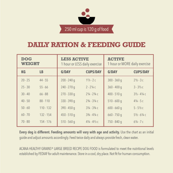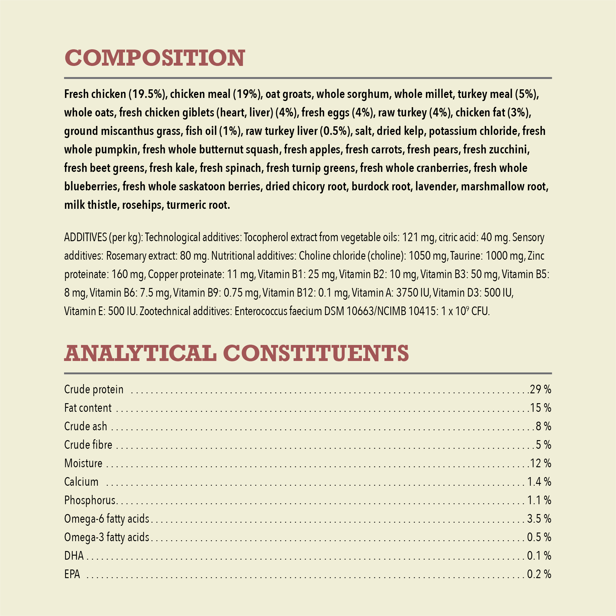 Get obsessed with protein-rich animal ingredients and fiber-rich wholesome grains in ACANA™ Healthy Grains! Our ACANA™ Healthy Grains Large Breed Recipe is specially crafted with fresh or raw free-run* chicken and turkey to nurture the needs of your large breed dog, including joint health. It’s also balanced with healthy grains in the form of oats, sorghum and millet. These grains are high in fiber and gluten-free, offering added nutrition that helps support a healthy digestive environment. Our Large Breed Recipe is crafted with 60% animal ingredients* balanced with 40% wholesome grains, vegetables, fruit, botanicals and nutrients** and helps support 4 key health benefits. This results in a protein-rich, nutritious and delicious food to help them live a full, happy life. *Our free-run chickens and turkeys are not housed in cages and are able to move in a barn without outdoor access.